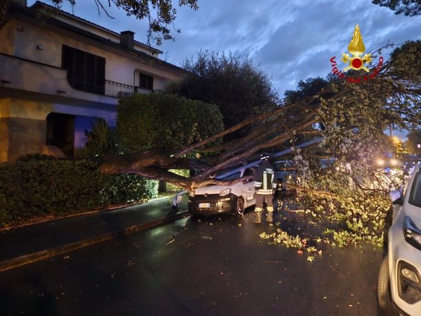 GROSSETO – I vigili del fuoco sono intervenuti nella notte fra il 21 e il 22 agosto 2025 in diverse aree della provincia di Grosseto a causa di danni provocati dal maltempo. Un primo intervento e’ stato necessario intorno alle 2:30 a Principina a Mare, dove un pino si e’ abbattuto su un’autovettura in sosta. Per fortuna, al momento della caduta, non vi era nessuno all’interno del veicolo e non si sono registrati feriti. I vigili del fuoco hanno rimosso la pianta e ripristinato la sicurezza dell’area.