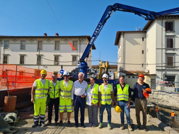 E questa mattina, 26 agosto 2025, il presidente Eugenio Giani è stato sul cantiere nella piazza del Mercato di Sesto per un sopralluogo a cui ha partecipato anche il Consorzio di Bonifica che è stazione appaltante dei lavori, con il presidente Paolo Masetti. Presente anche il direttore della Protezione cdella Protezione civile e difesa del suolo della Regione Toscana.