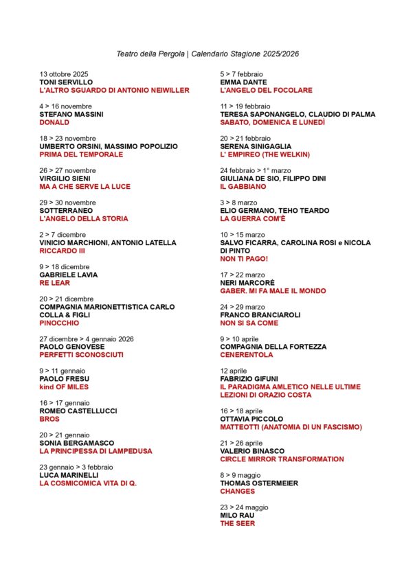Teatro della Pergola – Via della Pergola 30 – 055.0763333 pergola@teatrodellatoscana.it