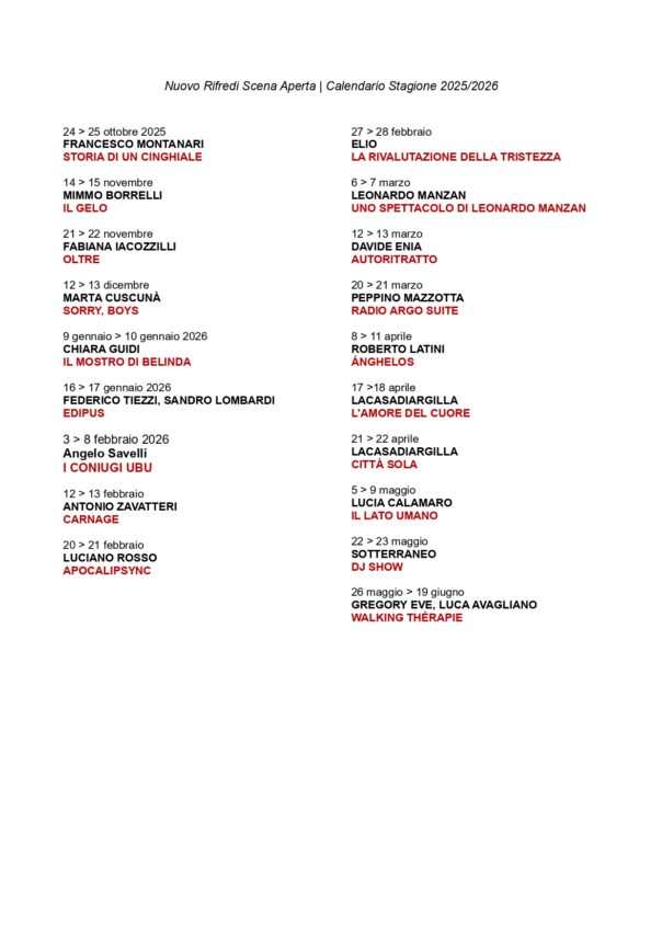 Nuovo Rifredi Scena Aperta – Via Vittorio Emanuele II 303 – 055.4220361 rifredi@teatrodellatoscana.it