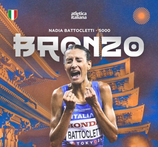 TOKIO – Bronzo nei 5mila metri femminili per Nadia Battocletti ai mondiali di atletica di Tokio, oggi 20 settembre 2025. Storica settima medaglia per l’Italia. Ha segnato 14’55″42 il crono della 25enne di Cles, le sette medaglie nella manifestazione fanno superare Goteborg 1995 con sei medaglie, è record di presenze sul podio in un Mondiale per l’Italia.