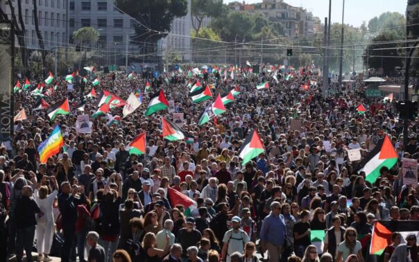 Dopo un fitto lancio di fumogeni e bottiglie, è stata danneggiata e data alle fiamme una macchina. Sono intervenuti i vigili del fuoco per spegnere le fiamme ormai alte tra i palazzi vicini. I disordini sono proseguiti fino a piazza Vittorio, tra le macchine in transito. C’è stato anche un lancio di bottiglie contro le finestre della sede di Casapound da cui sono stati lanciati oggetti verso i manifestanti in strada. La polizia ha azionato nuovamente e a più riprese gli idranti per disperdere i violenti. E durante i disordini è stato arrestato il flagranza un manifestante che avrebbe aggredito un agente. Nel bilancio anche la vetrina di un Carrefour in via Labicana infranta. A scatenare le violenze una minoranza che si è unita a una ‘marea umana’ che sfilava in un corteo che si è svolto inizialmente in modo pacifico. Duecentocinquantamila le persone secondo le persone e un milione per gli organizzatori. “Roma è bloccata. Siamo un milione di persone per la Palestina. Abbiamo bloccato tutto. L’Italia sa da che parte stare” avevano detto i promotori a metà pomeriggio, prima dei disordini. “Stop complicità con Israele contro occupazione e genocidio, con la resistenza Palestinese” è stato scandito più volte. Tra le migliaia di bandiere che sventolavano in piazza anche qualcuna di Hamas e di Hezbollah. Diversi i cori contro Israele e il governo. “Il 7 ottobre giornata della Resistenza palestinese”, recitava uno striscione. E l’attenzione per la manifestazione era altissima da giorni, in particolare per isolare eventuali infiltrati violenti. E’ stato predisposto un piano di sicurezza ‘imponente’ con duemila agenti delle forze dell’ordine impiegati. Il piano sicurezza è scattato stamattina e sono stati controllati ai caselli autostradali oltre cento pullman in arrivo nella Capitale. Su due di questi e su un’auto sono stati sequestrate aste metalliche, bastoni e maschere antigas. Identificati a Colle Oppio anche cinque minorenni trovati in possesso di caschi, fumogeni, bottiglie in vetro e bombolette spray.