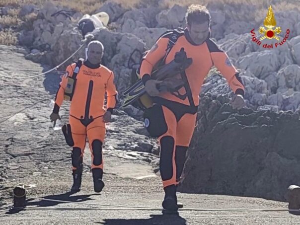 La profondità del ritrovamento, si spiega anche, rende impossibile l’immersione dei sommozzatori dei pompieri “per il superamento dei limiti di esercizio in cui gli stessi sono abilitati ad operare”. Motivo per cui la guardia costiera provvederà al recupero tramite l’utilizzo di attrezzature in dotazione mentre gommone e elicottero dei vigili del fuoco con a bordo personale Sa e sommozzatore sono rientrati nelle sedi di servizio.