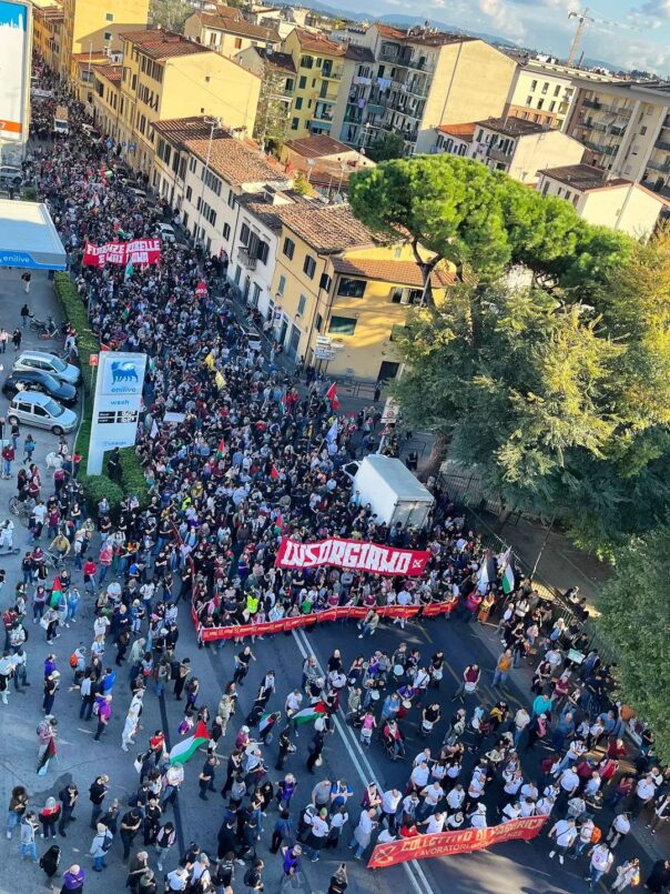 Il corteo era stato promosso da varie sigle, con il testa il Collettivo Gkn, per richiamare l’attenzione sulla situazione degli operai della ex Gkn, stabilimento industriale chiuso da quattro anni, e a favore della causa palestinese.