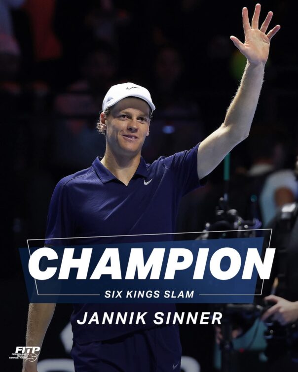 RIYADH – Prestazione fenomenale di Jannik Sinner in Arabia Saudita che vince il Six Kings Slam per il secondo anno consecutivo, battendo in finale Carlos Alcaraz con un netto 6-2, 6-4 in poco più di un’ora. L’azzurro ha dominato dall’inizio alla fine: solo otto punti persi al servizio e tantissima qualità in risposta. Jannik, che incassa un assegno da 6 milioni di dollari, tornerà in campo la prossima settimana a Vienna