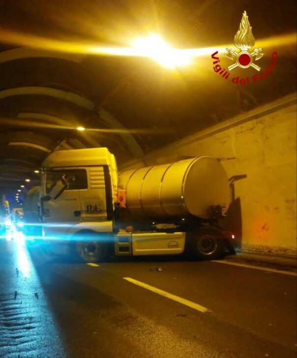 PIETRASANTA (LUCCA) – Incidente nel pomeriggio di oggi, 24 novembre 2025, sulla Bretella Lucca-Viareggio. Poco dopo le 16 una squadra di vigili del fuoco del comando di Lucca, distaccamento di Pietrasanta, è intervenuta sulla all’altezza del km 79, per un’autocisterna vuota che si è intraversata nella galleria di Bozzano.