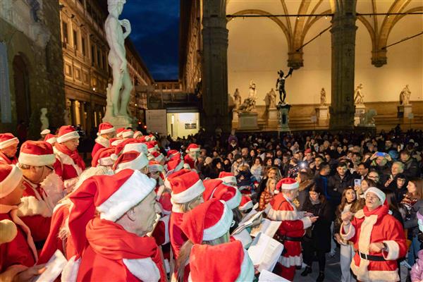 FIRENZE – Strade e piazze addobbate e illuminate a festa a Firenze nel fine settimana dell’Immacolata. Nel pomeriggio di oggi, 6 dicembre 2025, si è svolta la cerimonia di accensione degli alberi con la sindaca Sara Funaro. Il via alle 16,30 all’arengario di Palazzo Vecchio con l’esibizione del coro della compagnia dei Babbi Natale, seguita dall’accensione dell’albero nel Cortile della Dogana di Palazzo Vecchio e del videomapping sulla facciata.