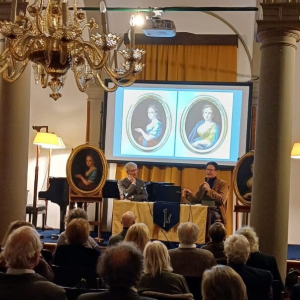 I due ritratti femminili sono stati presentati al Lyceum Club di Firenze dove sono esposte al pubblico da oggi, 10 dicembre 2025, in occasione della presentazione del volume di Federico Berti ‘Giovanni Antonio Pucci. Un pittore poeta nella Toscana di fine Settecento’.