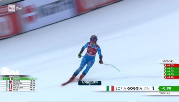 VAL D’ISERE – Sofia Goggia ha vinto il superG della Val d’Isere con il tempo di 1.20.24, riscattando subito la sfortunata discesa di sabato. Si tratta del successo n. 27 in coppa del mondo. L’olimpionica azzurra, alla quarta vittoria in carriera sulla pista francese Oreiller-Killy, ha preceduto la neozelandese Alice Robinson (1.20.39): sul podio ancora protagonista l’americana Lindsey Vonn che in 1.20.60 ha lasciato al quarto posto l’altra azzurra Elena Curtoni (1.20.97).