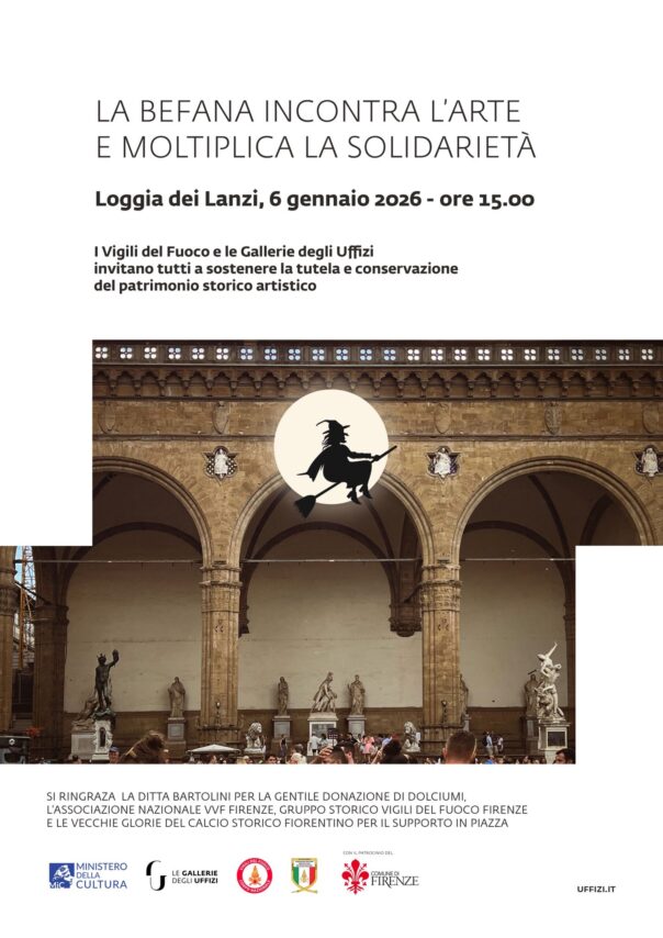 FIRENZE – La Befana dei Vigili del Fuoco come da tradizione torna a volare in piazza della Signoria a Firenze, nel pomeriggio del 6 gennaio 2026. La Befana darà prova di capacità acrobatiche calandosi dalla terrazza sopra la Loggia dei Lanzi e distribuendo caramelle e dolci ai piccoli spettatori.