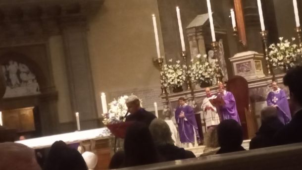 In piedi la mamma, Catherine che, pochi istanti prima di lui aveva comunque dato la notizia: “Noi, la famiglia, continueremo le attività di Rocco”. Battimani dei calciatori viola, con l’allenatore, Paolo Vanoli, in prima fila insieme a De Gea, Mandragora e Dodò, brasiliano cattolico, intervenuto recitando l’invocazione – “Ascoltaci o Signore!” – nella messa celebrata dal cardinale Giuseppe Betori, arcivescovo emerito di Firenze. Perchè il vescovo “titolare”, Gherardo Gambelli, è a visitare le missioni della Curia in India.