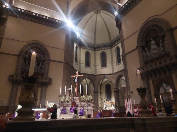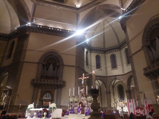 E’ il cardinale Giuseppe Betori, arcivescovo emerito di Firenze ad officiare la santa messa in memoria del presidente Commisso. L’arcivescovo Gherardo Gambelli è impegnato in una missione in India. Una maglia viola con dietro la scritta “Rocco” è stata posta dentro il Duomo, in una teca di vetro.