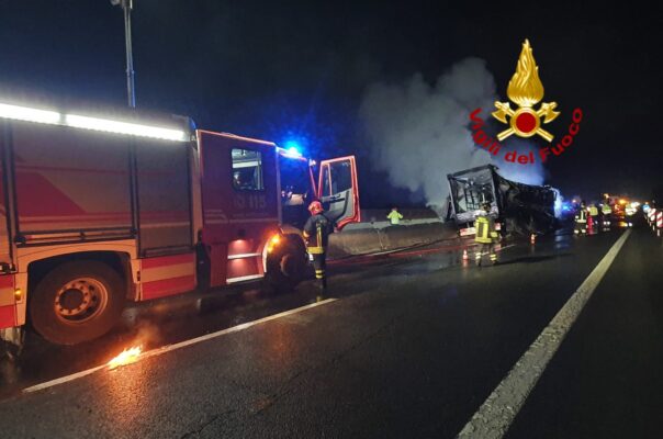 Autostrada A1, tir in fiamme: tratto Incisa-Firenze sud riaperto dopo una notte di lavoro