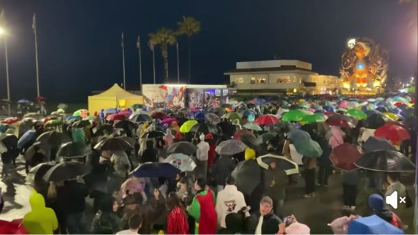 VIAREGGIO (LUCCA) – La pioggia incessante ha accompagnato oggi, 7 febbraio 2026, il Carnevale di Viareggio, mettendo alla prova pubblico e organizzazione. Il secondo corso mascherato in notturna del è iniziato alle 18 anzichè alle 17 a causa del maltempo. Sono rimaste alla Cittadella del Carnevale però le mascherate di gruppo e quelle isolate. Le costruzioni sono risultate ancora più attraenti sotto gli effetti delle luci artificiali, malgrado la pioggia.