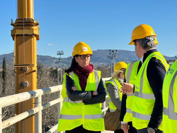 Stadio Franchi: posa della maxi trave. Sopralluogo di Uefa e Figc in vista di Euro 2032