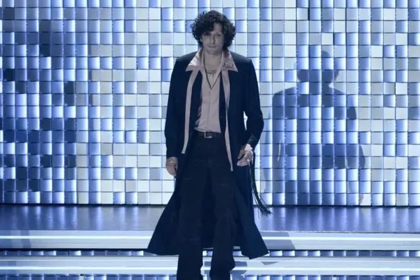 Tocca al rapper Sayf che canta “Tu mi piaci tanto”, brano molto applaudito in sala. Solo un anello al dito, nessun altro gioiello in mostra di grande valore e brand. Sayf si presenta sul palco così dopo aver sfilato ieri sul green carpet con diversi gioielli di Tiffany che avrebbero potuto creare un nuovo caso come Tony Effe lo scorso anno. Per il cantante di origini tunisine, un abito in doppio petto gessato e cravatta argentata, oltre alle consuete treccine.