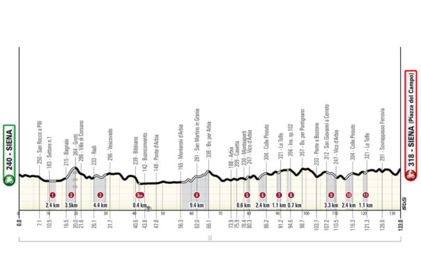 ORARI – Gli orari delle gare di sabato 7 marzo. Strade Bianche Women Elite: partenza dalla Fortezza Medicea alle ore 10.15, con rientro previsto fra le 13.49 e le 14.15. Strade Bianche: partenza alle ore 11.40, con rientro previsto fra le 16.28 e le 16.58.
