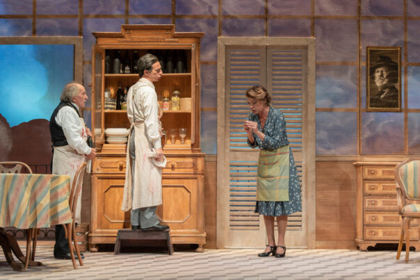 Carolina Rosi ha curato l’allestimento riutilizzando la scenografia originale dell’edizione 2015, diretta da Luca De Filippo, inclusi il fondale, il boccascena e gli oggetti, che hanno ripreso vita come se fossero sempre stati pronti per una nuova tournée, a dieci anni dalla morte prematura di Luca De Filippo. Con il riemergere delle scene, dei costumi e delle musiche, sono riemersi anche i ricordi, mescolando la gioia del ritrovarsi alla sofferenza della memoria delle perdite. Sul palco, insieme a Carolina Rosi e agli attori e ai tecnici della Compagnia di Luca De Filippo, nel ruolo del protagonista Ferdinando Quagliuolo c’è Salvo Ficarra, che ha accolto con entusiasmo l’invito e ha deciso di affrontare il personaggio unendo leggerezza e profondità. Ha colto lo spirito comico e le ombre interiori del personaggio, facendo proprio l’intento di Luca De Filippo di creare un dialogo continuo con il pubblico, toccando corde artistiche affini.