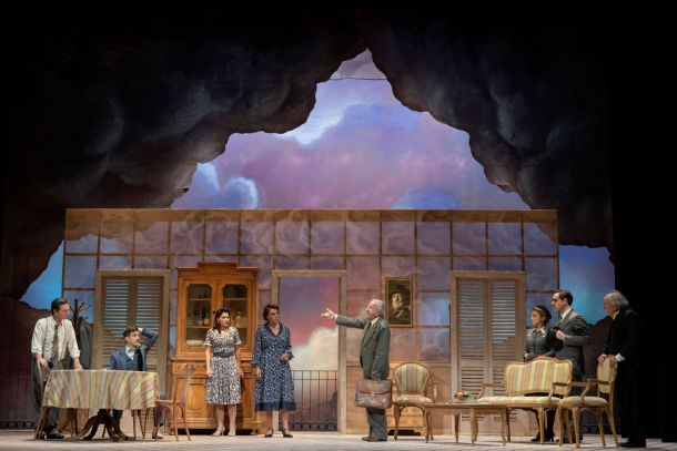 Carolina Rosi ha curato l’allestimento riutilizzando la scenografia originale dell’edizione 2015, diretta da Luca De Filippo, inclusi il fondale, il boccascena e gli oggetti, che hanno ripreso vita come se fossero sempre stati pronti per una nuova tournée, a dieci anni dalla morte prematura di Luca De Filippo. Con il riemergere delle scene, dei costumi e delle musiche, sono riemersi anche i ricordi, mescolando la gioia del ritrovarsi alla sofferenza della memoria delle perdite. Sul palco, insieme a Carolina Rosi e agli attori e ai tecnici della Compagnia di Luca De Filippo, nel ruolo del protagonista Ferdinando Quagliuolo c’è Salvo Ficarra, che ha accolto con entusiasmo l’invito e ha deciso di affrontare il personaggio unendo leggerezza e profondità. Ha colto lo spirito comico e le ombre interiori del personaggio, facendo proprio l’intento di Luca De Filippo di creare un dialogo continuo con il pubblico, toccando corde artistiche affini.