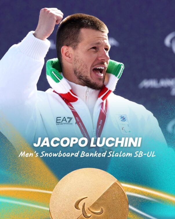 CORTINA D’AMPEZZO – Jacopo Luchini ha scritto una pagina storica dello snowboard paralimpico alle Paralimpiadi Invernali Milano Cortina 2026. L’atleta toscano, di Montemurlo in provincia di Prato, ha conquistato oggi, 13 marzo 2026, la medaglia d’oro nel banked slalom SB-UL.