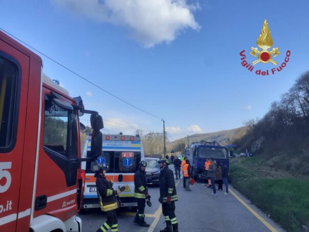 AREZZO – I vigili del fuoco stanno intervenendo stamattina, 17 marzo 2026, nei pressi di Calbenzano nel comune di Subbiano (Arezzo), per un incidente stradale tra un mezzo pesante e due vetture.