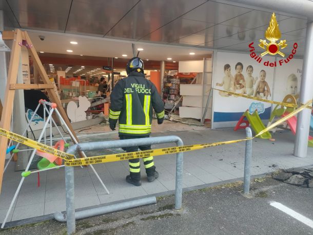 Nel parcheggio privato di una attività commerciale, il conducente di un’auto ha perso il controllo della vettura, durante la fase di parcheggio, andando a sfondare la vetrata del negozio.