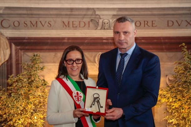 FIRENZE – Il sindaco di Kiev, Vitaliy Klitschko, ha ricevuto oggi, 20 marzo 2026, le Chiavi della città di Firenze. Le ha consegnate la sindaca Sara Funaro con una cerimonia a Palazzo Vecchio. “Un gesto semplice, ma profondamente carico di significato, che parla di amicizia, di memoria, di responsabilità condivisa. In questo modo vogliamo rafforzare un legame storico tra città amiche, sostenere la solidarietà tra i popoli”, ha detto la sindaca Funaro.
