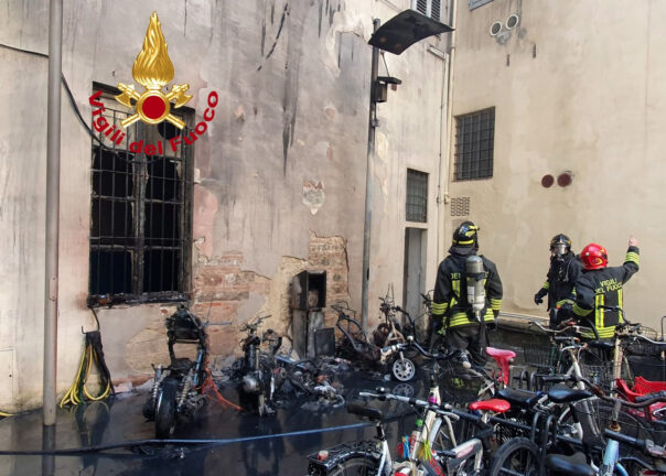 Sono terminate le operazioni di spegnimento dell’incendio in una corte interna, che ha interessato 5 ciclomotori di cui uno con 2 alimentazione elettrica in prossimità di una stazione di ricarica. Richiesto l’intervento di un equipaggio sanitario al quale è stata affidata una persona evacuata con la maschera di soccorso dai Vigili del fuoco.