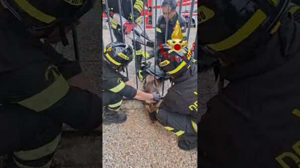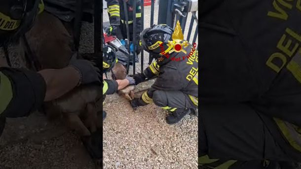 I Vigili del fuoco utilizzando un divaricatore, hanno allargato i due elementi di ferro per estrarre l’animale ferito, consegnato successivamente ad un’associazione animalista.