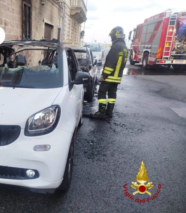 Le fiamme hanno interessato due auto in sosta e la facciata di un palazzo, soprattutto la zona delle finestre del piano terreno della palazzina e la porta del box. Sul posto anche la Polizia di Stato. Le cause sono in corso di accertamento.