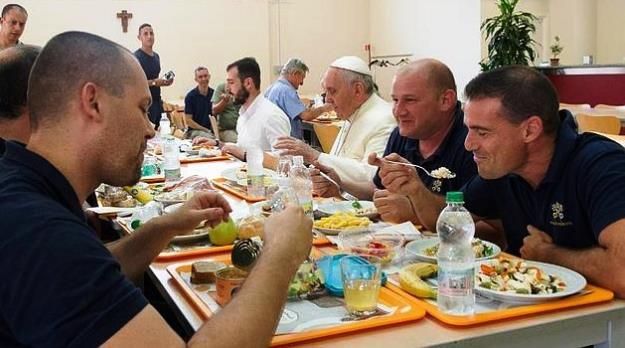 Papa Francesco a Firenze, pranzo alla mensa dei poveri: menu con ribollita nel piatto di plastica e acqua di rubinetto