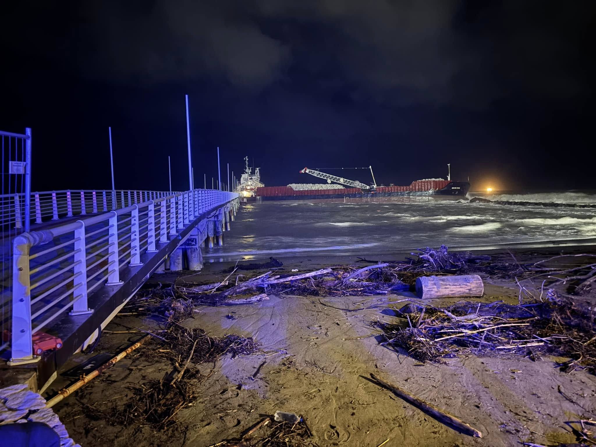 Marina di Massa, nave arenata: gravi danni al pontile. A bordo 102 tonnellate di gasolio. Si teme sversamento