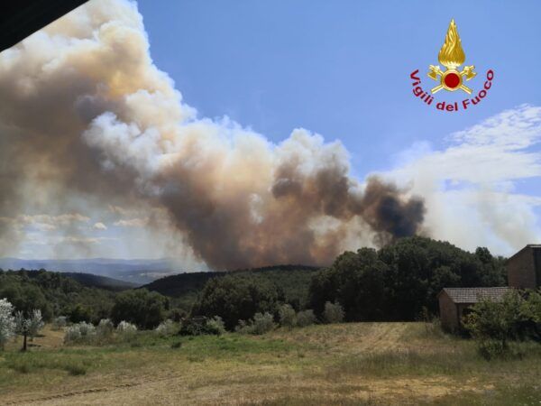 Incendio boschivo in corso in località Tenuta di Bagnolo, nel Comune di Civitella Paganico (Grosseto). Le fiamme si sono sviluppate poco dopo mezzogiorno rapidamente sospinte...