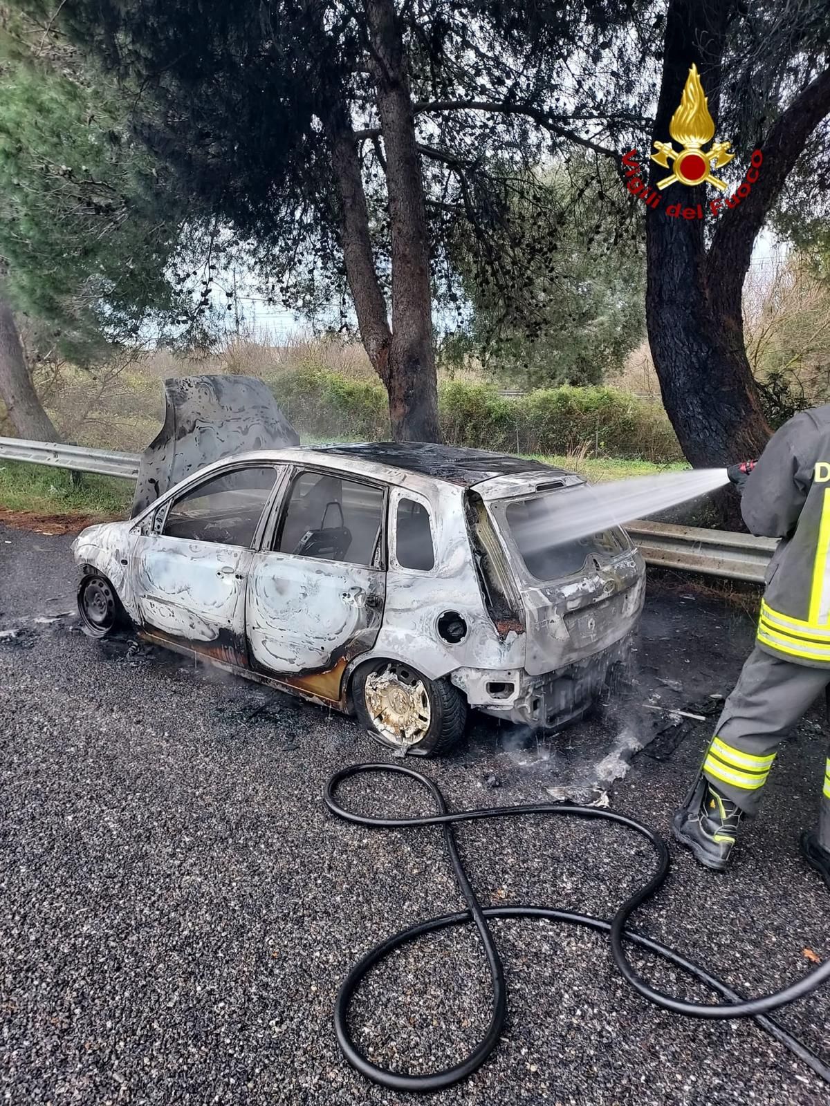 Un’autovettura con a bordo il solo conducente, per cause in corso di verifica, durante la marcia si è incendiata improvvisamente oggi, 20 gennaio 2025