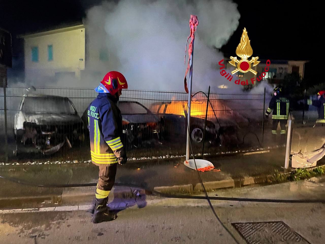 Fucecchio: incendio di notte nel parcheggio di una concessionaria. 4 auto distrutte dalle fiamme (foto)
