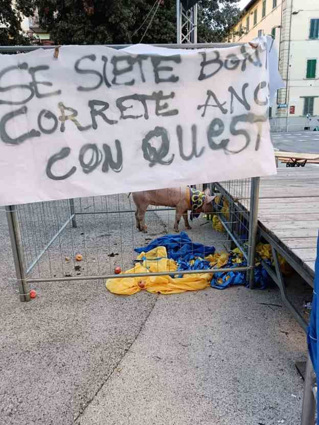 Giostra del Saracino: maialino vittima di un crudele gesto goliardico fra contrade. Interviene la polizia
