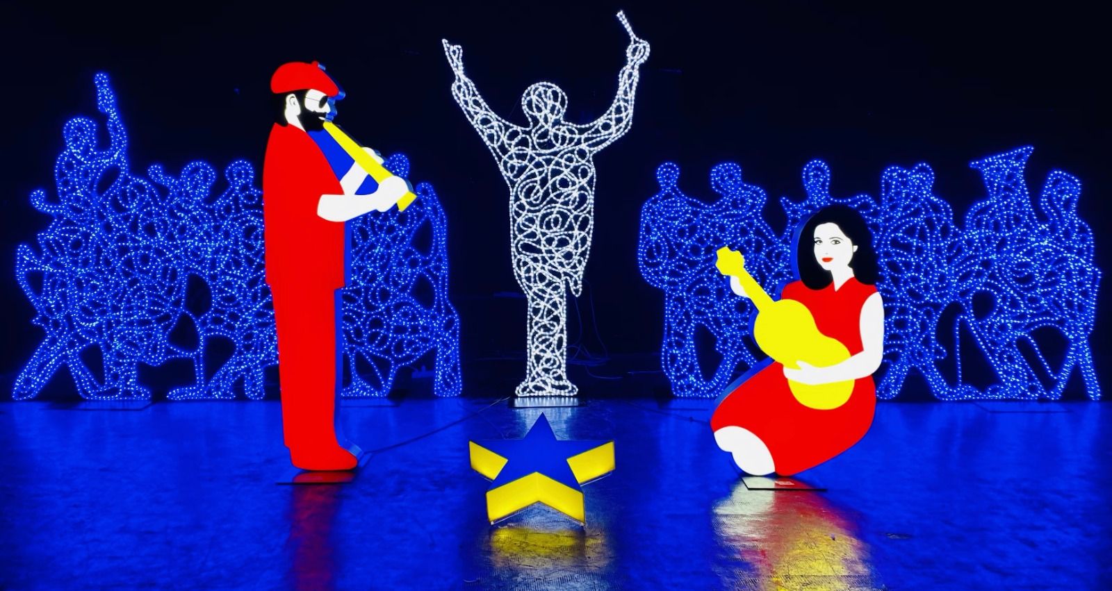 Tra i pastori e i re magi ci sono Freddie Mercury, David Bowie, Louis Armstrong, Luciano Pavarotti, Rino Gaetano, Mina, Renzo Arbore, Rita Pavone, Max Pezzali, Caterina...