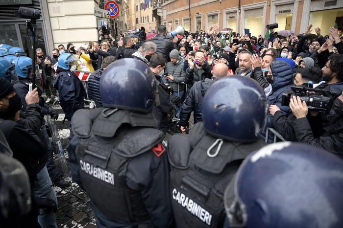 Ristoratori: sit-in IoApro, tensione, petardi contro gli agenti, cariche della Polizia