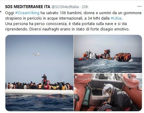 Migranti: Ocean Viking ne «salva» 106 presso la Libia, e li porterà in Italia