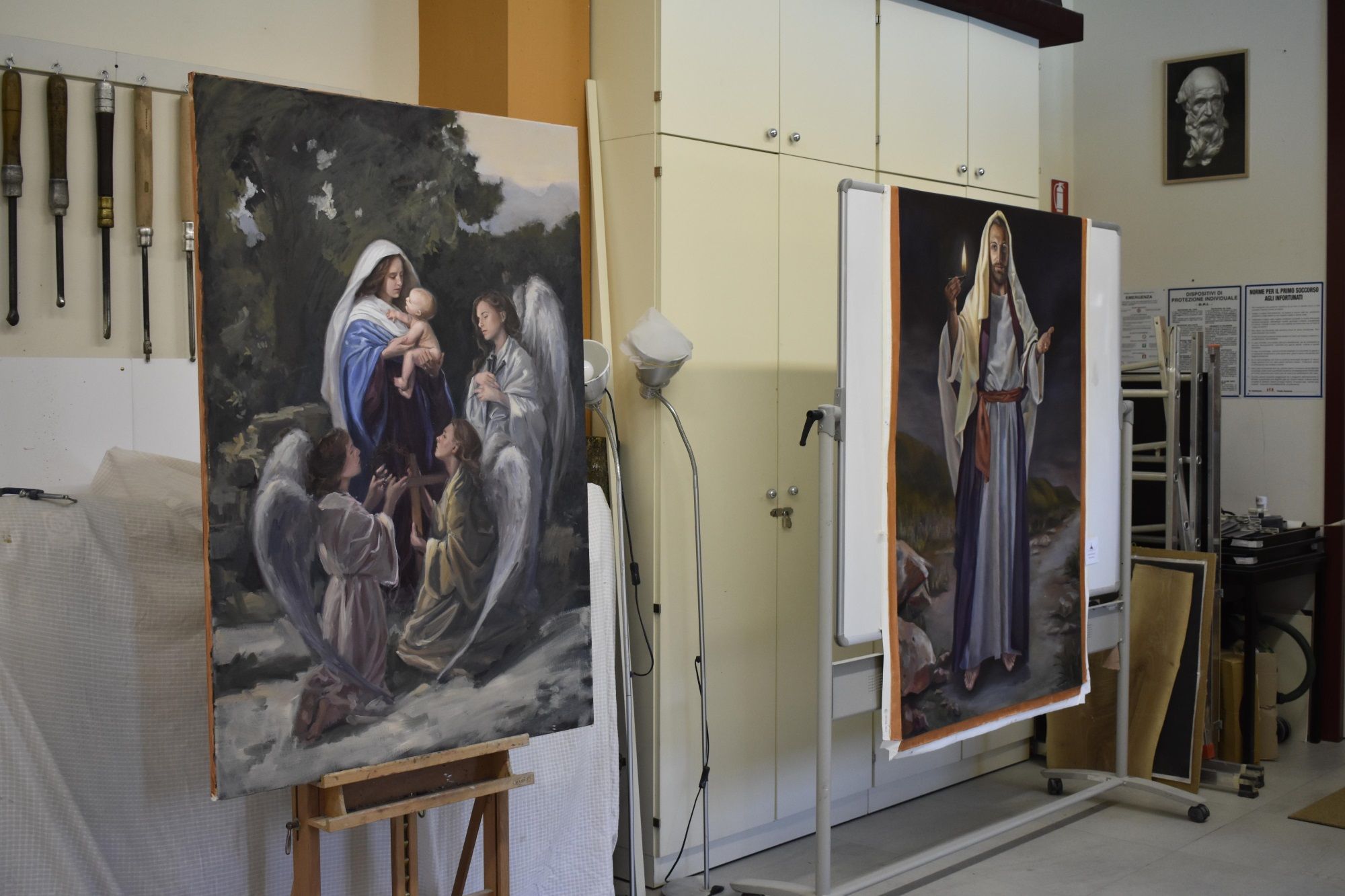 Una cerimonia arricchita dal dipinto donato alla Scuola dal maestro Peppe Candeloro, che raffigura una Madonna con Bambino