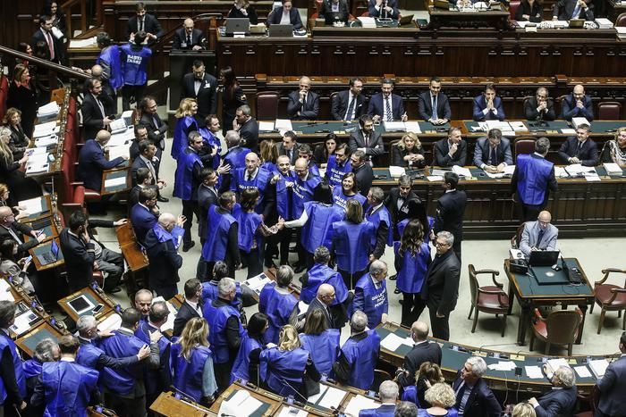 Polemiche in aula, le opposizioni hanno continuato la protesta, Forza Italia e FdII hanno votato contro, dem e Leu non hanno partecipato al voto