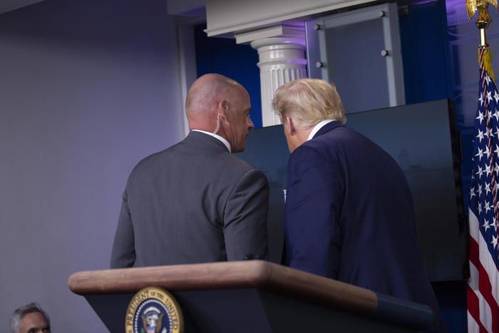 Attimi di paura alla Casa Bianca. Donald Trump viene allontanato dalla sala stampa pochi minuti dopo aver iniziato la conferenza stampa della task force per il coronavirus a...
