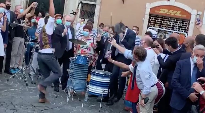 Conte, Fico, Gualtieri e Bellanova suonano i tamburi in piazza dopo i pieni poteri