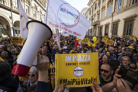Vitalizi; manifestazione M5S in Piazza Santissimi Apostoli, con Crimi, Bonafede, di Maio