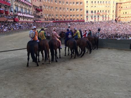 Otto contrade correranno stasera il Palio di Siena. Le accoppiate fantino-cavallo. Non ci sono Civetta e Istrice