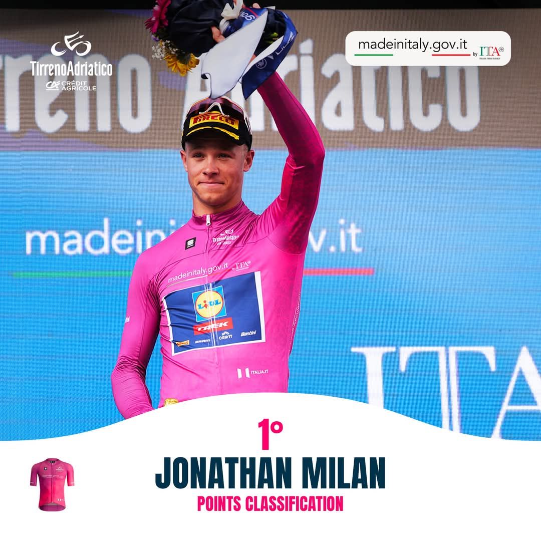 Jonathan Milan ha dominato in volata la seconda tappa della Tirreno-Adriatico, la Camaiore-Follonica di 189 chilometri