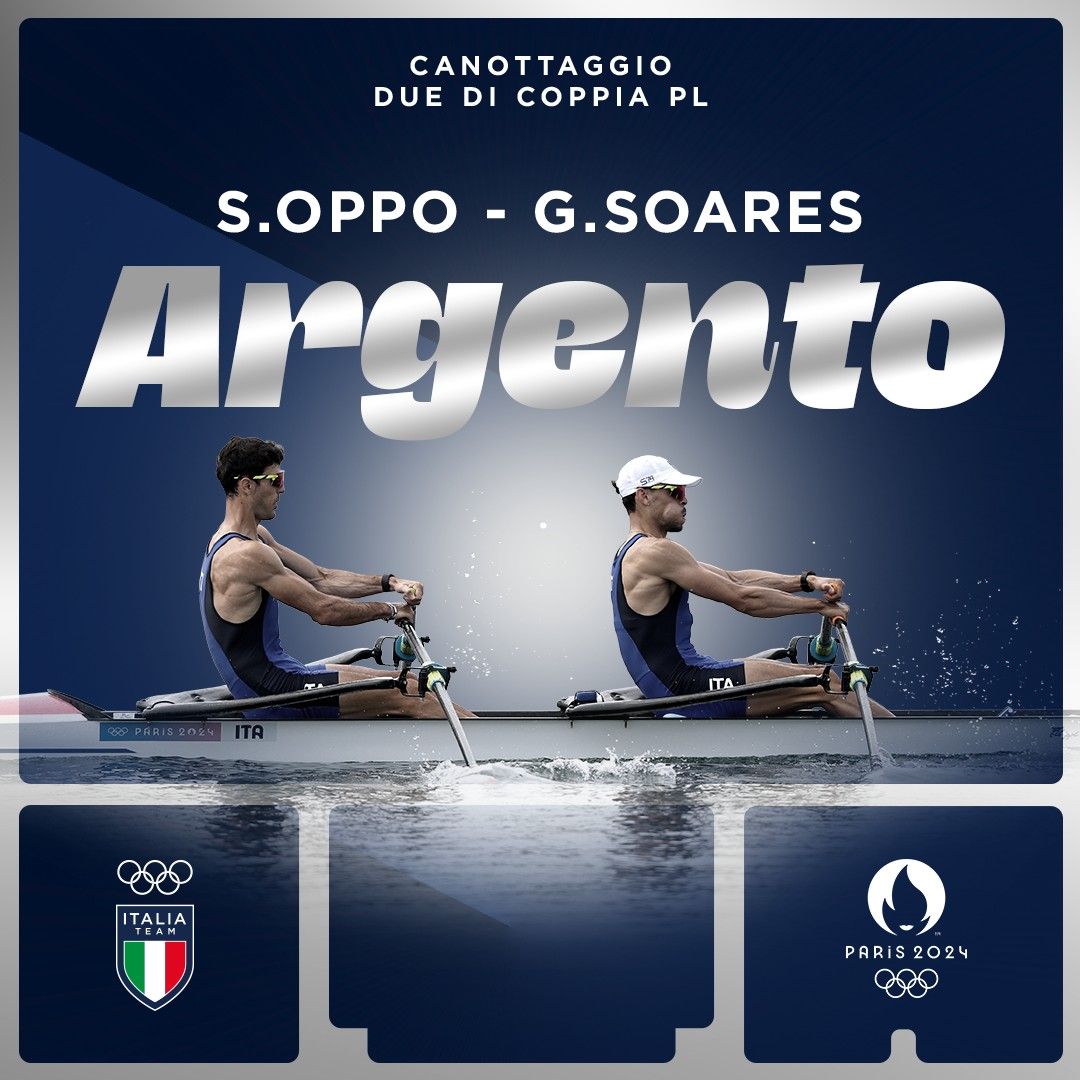 Stefano Oppo e Gabriel Soares conquistano uno splendido argento nel due di coppia pesi leggeri, prova del canottaggio che vedeva l'equipaggio azzurro tra i favoriti