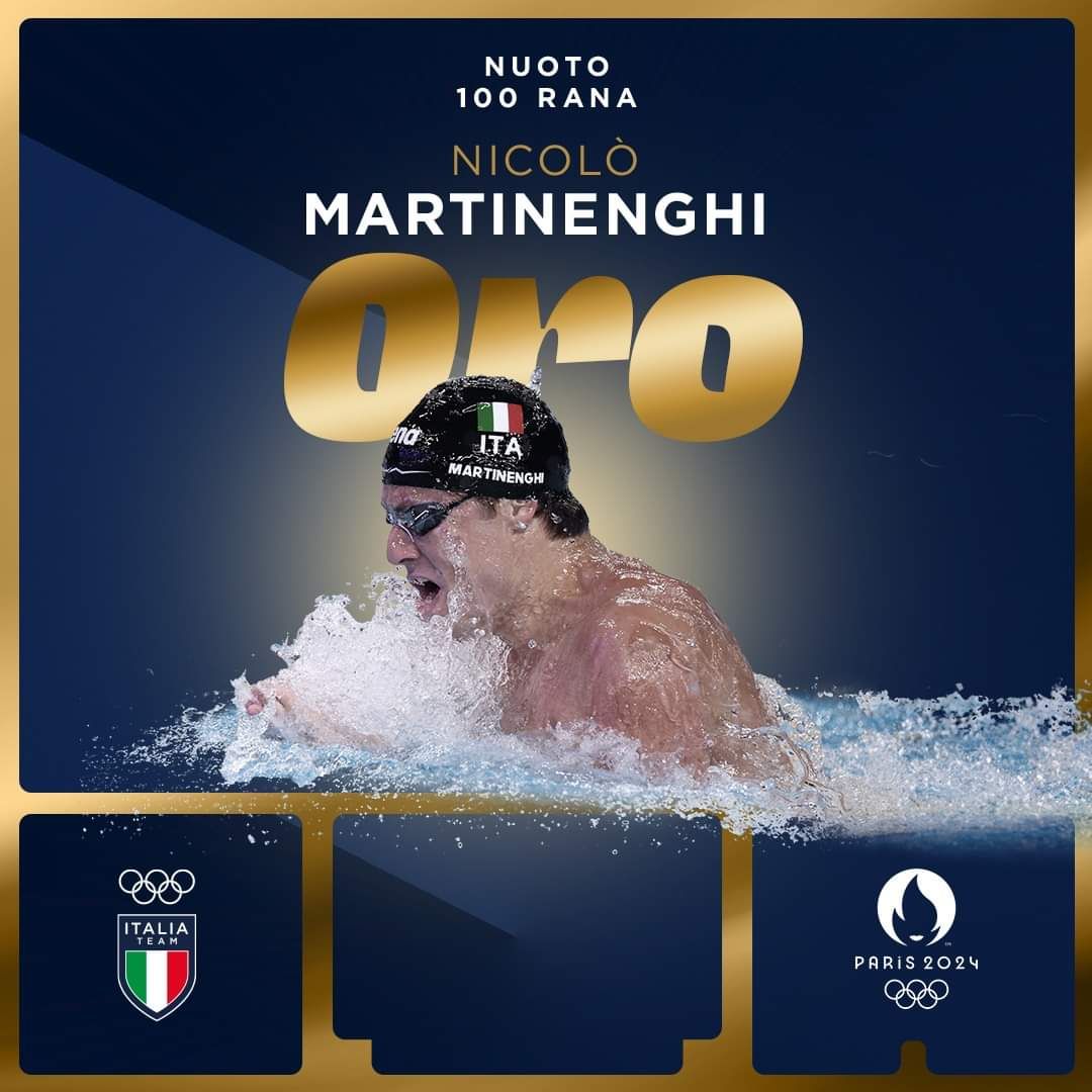 (Foto FB Italia Team)PARIGI – Primo oro per l’Italia alle Olimpiadi di Parigi. Sul podio più alto Nicolò Martinenghi nei 100 rana. Il 23enne...
