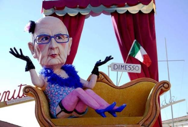 Quasi tutte le costruzioni di cartapesta erano dedicate al premier, oggi 1 febbraio. Ma ha molto divertito anche quella che raffigurava la cancelliera tedesca a seno nudo