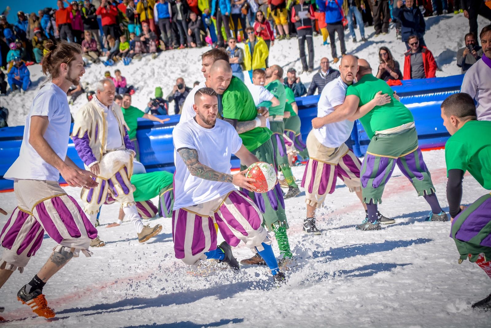 Calcio storico sulla neve: Bianchi-Verdi a Plan de Corones (Foto). A Pasqua sorteggio del torneo 2019